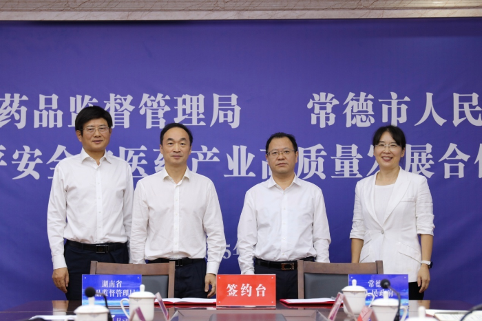湖南918博天堂副局长覃永忠与常德市人民政府副市长袁世平签署了《关于促进常德市药品高水平安全和医药产业高质量发展合作框架协议》。这一协议的签署,标志着双方在共同筑牢药品安全防线、培育产业发展新动能方面,正式迈入协同联动、互利共赢的新阶段。随后,欧阳志刚与周振宇共同为常德市药品审评核查中心揭牌。